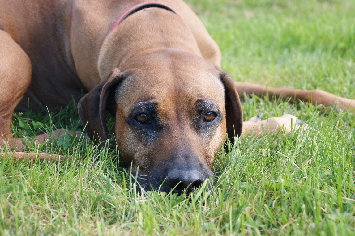 Bortsett fra at vi måtte stå veldig tidlig opp to dager på rad – enda det var helg – var det ganske artig medd RR-dagene! Det vil si – søndagen var best, da – lørdagen var litt kjedelig innimellom for det regnet en del, men Oona, Serwa, Inka og jeg lå jo tørt og godt og slappet av i teltet vårt. Søndag morgen var det jo mye bedre vær, og da vi kom til Malungen var jo du på plass allerede – så artig! Plutselig var det i gang og det vår tur – jeg skulle jo inn i juniorklassen – for første gang på offisiell ”voksenutstilling”! Jeg var faktisk den yngste av alle som var med i den offisielle utstillingen – jeg hadde jo fylt 10 måneder bare dagen før! Det var mange deltagere så det var lenge å vente før dommeren og eleven hennes skulle se litt nøyere på meg. De virket jo ganske hyggelige og hilste pent på meg før de begynte å plukke og ta på meg overalt. Det var jo greit nok – jeg syntes bare de var litt uhøflige da de begynte å diskutere snuta mi bokstavelig talt rett over hodet på meg – som om jeg ikke var der! Dommeren mente visst at den var noe kort – vel, vel – jeg har blitt kalt ”pitbulltryne” før, jeg – det var visst en periode i barndommen min da snuta mi virket enda kortere og bredere enn det den er nå – så jeg tok meg ikke spesielt nær av det… Til slutt ville dommerdama at jeg skulle løpe – og det er jo alltid morsomt, så Synnøve og jeg løp av gårde rundt i den store ringen – og jeg prøvde å løpe så elegant jeg kunne! Dommeren hadde sagt dagen før at hun ønsket at RRer skulle se ut som om de kunne dra på ”lejonjakt” uten å bli ”lejonmat”, så jeg forsøkte å vise at jeg har masse muskler og spenst så jeg kan klare å hoppe unna en løve! Vi måtte løpe flere runder før hun var fornøyd, og til slutt kom den hyggelige ringsekretæren med et rødt bånd til oss og sa at jeg var ”Excellent” – derfor skulle jeg få komme inn og løpe mer litt senere!!!